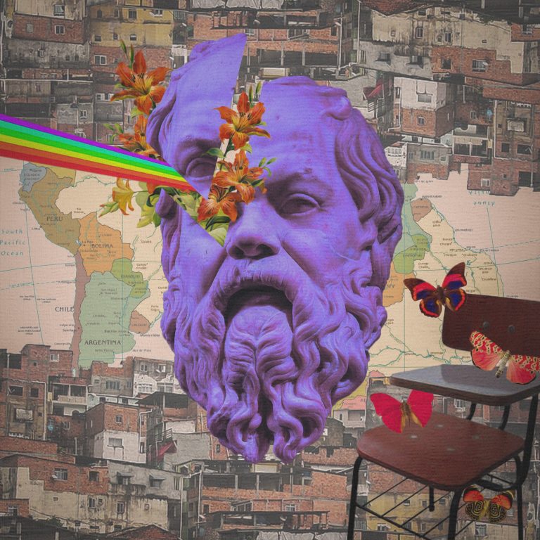 Cá está essa palavra com a qual eu já tive (e talvez ainda tenha) uma relação de amor e ódio. Filosofia? Que que isso tem a ver com a vida dessas pessoas? Uma trabalha das 08h às 17h; a outra, menina negra que teve depressão por conta de uma vida familiar turbulenta; a outra, lésbica que muito sofreu em contextos religiosos; o outro, um menino negro que se sente “um peixe fora d’água”… O que essa prática supostamente tão antiquada, aristocrática, eurocêntrica, branca, patriarcal, enfim — o que a filosofia teria de tão importante que valesse a pena torná-la a mais importante palavra do meu convite?